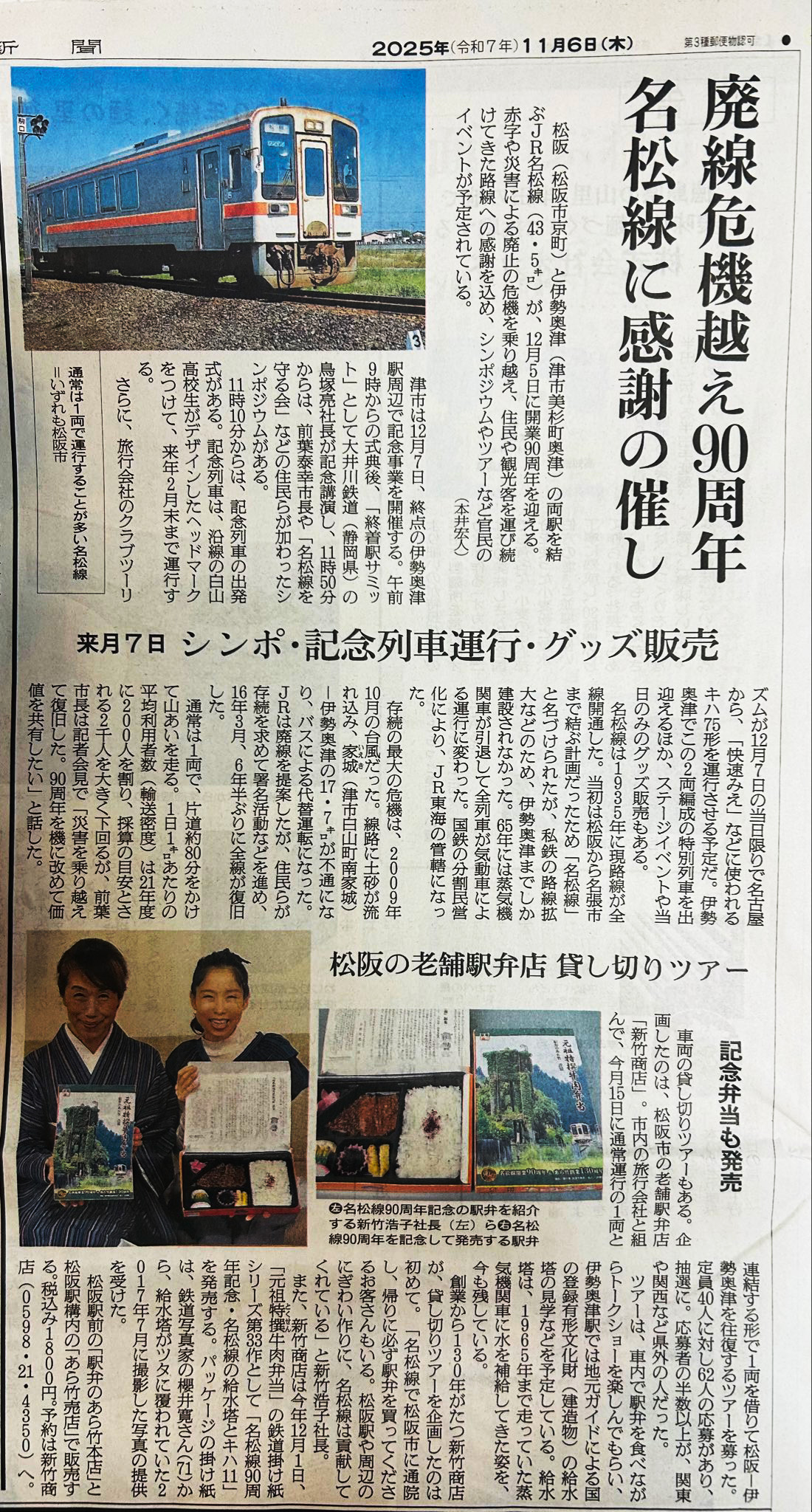 @niihama_izuna廃線の危機乗り越え、名松線開業90周年 伊勢奥津で記念列車出発式 [三重県]:朝日新聞 share.google/5HC0xyv5yUlNOy…