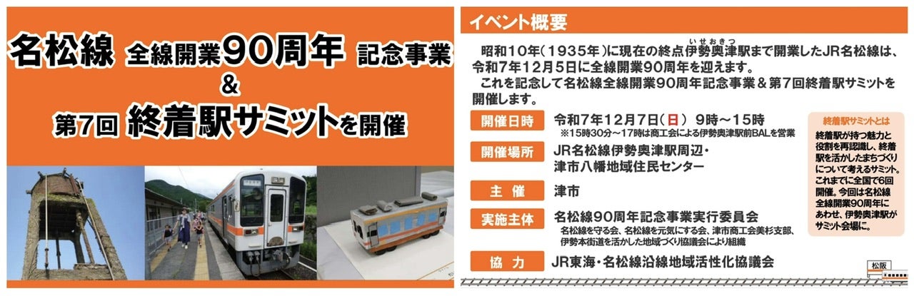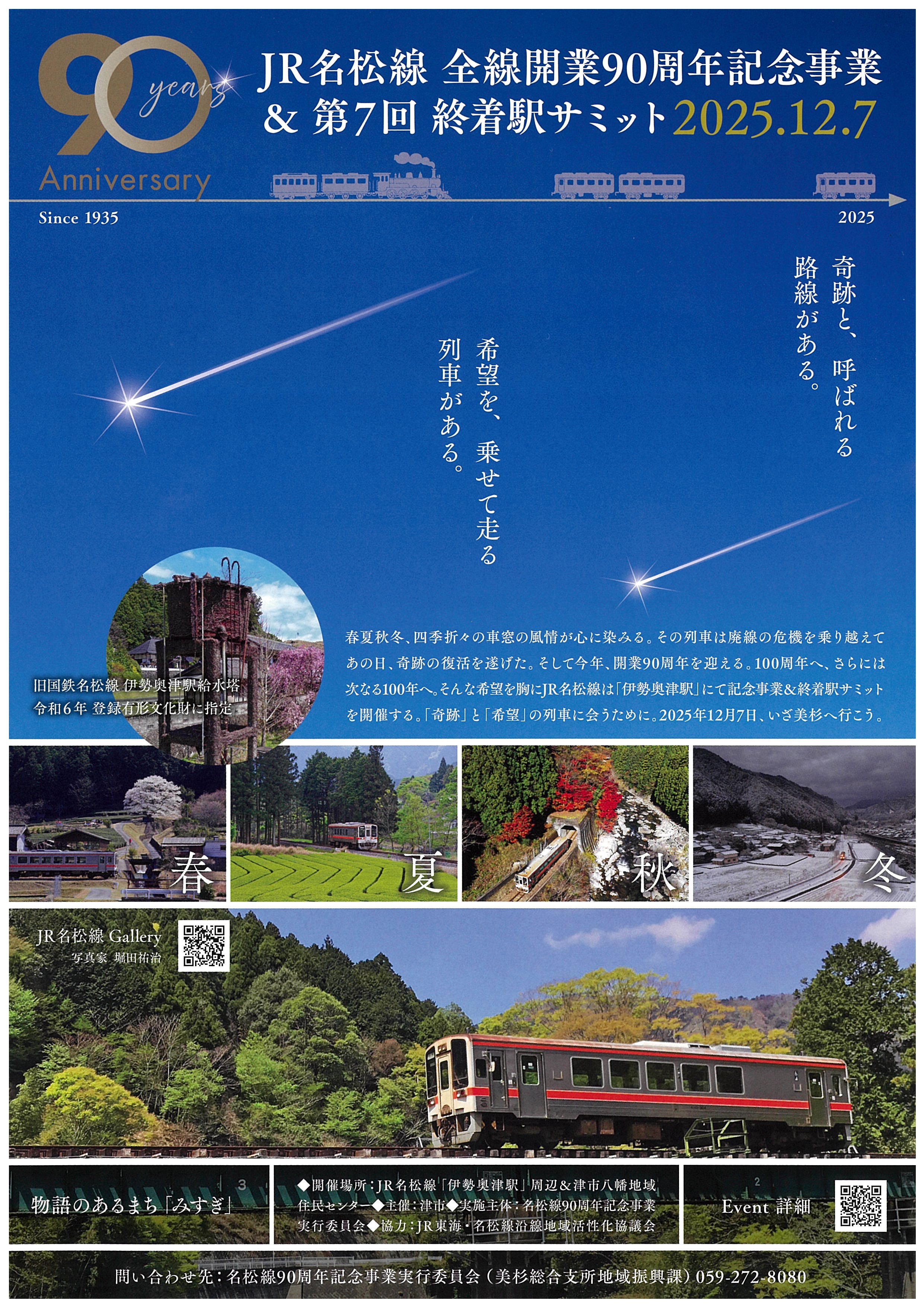 @mikawa_1964「駅周辺では市主催の関連イベントもあり、災害による廃線の危機を乗り越えて走り続けるローカル線の節目を祝った」x.com/JR_Central_202… info.city.tsu.mie.jp/www/contents/1… / “廃線の危機乗り越え、名松線開業90周年 伊勢奥津で記念列車出発式:朝日新聞” htn.to/4hUA3LoEVb