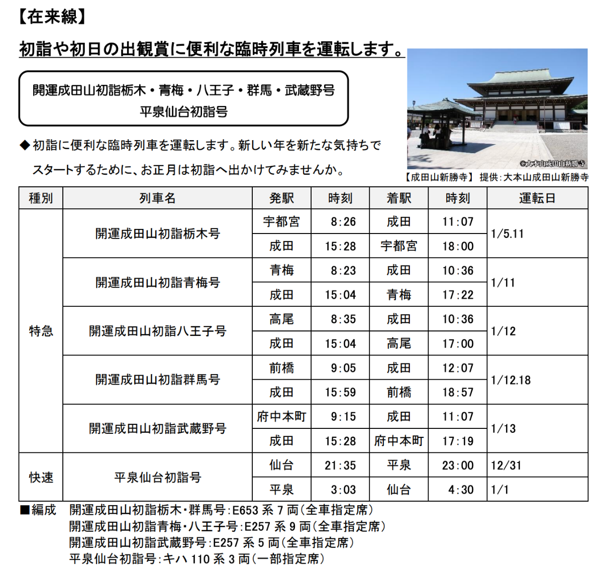 @cztH0UkmwE68333「立川の次は成田に停まります」多摩エリアと千葉県を結ぶ特急が運行へ グリーン車を連結した9両編成で すごい電車🚆この列車は「成田山新勝寺への初詣に便利な特急列車です。停車駅は青梅河辺羽村拝島昭島立川成田です。時刻表上は立川~成田間でノンストップ運転となり新宿駅では乗降できません」