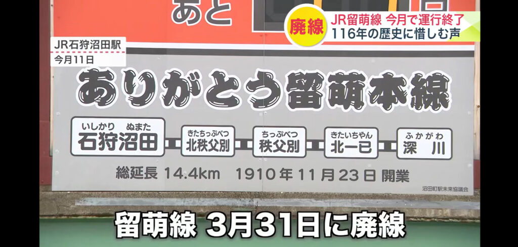 NEW! JR北海道(鉄道コラム) 116年の歴史!?命がけでつくられた路線がどんどん消えていく…最短本線も⁉ 2026年3月25日 JR留萌線は3月末で廃止になり、116年の歴史に幕を下ろします。沿線では鉄道ファンや住民が別れを惜しむ一方、廃線後はバス転換による不便さへの不安もあります。利用者減少によりJR北海道単独での維持が困難となり、同様に赤字の線区も廃止や存続の議論が続いています。今後は利便性向上などで地域交通をどう維持するかが課題になりま... あいえす