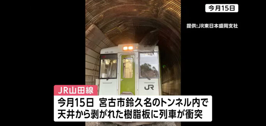 NEW! JR東日本(鉄道コラム) 再開見通せず??トンネルで17.5kgのモルタル落下??営業係数5,437円の大赤字路線⁇ 2026年4月19日 JR山田線のトンネルでモルタル片(最大17.5kg含む計約60kg)が落下する事故が発生し、盛岡―宮古間の約9割が長期運休となっています。原因は老朽化による壁面の劣化とみられ、他にも脆弱な箇所が確認されました。現在は応急工事と調査が進められていますが、復旧のめどは立っていません。代替バスが運行され、通学への影響軽減のた... あいえす