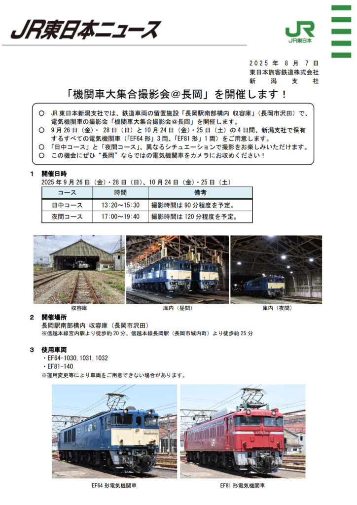 @yamaneko2go長岡にはもう少し置いておくと思っていたのですが、本当に11月が終わるとJR東から電気機関車が無くなってしまうのですね。しかも最後の撮影会はなんと12万円スタートのオークション。最後の最後までボッタクって終わるのですね。 jreast.co.jp/press/2025/nii…