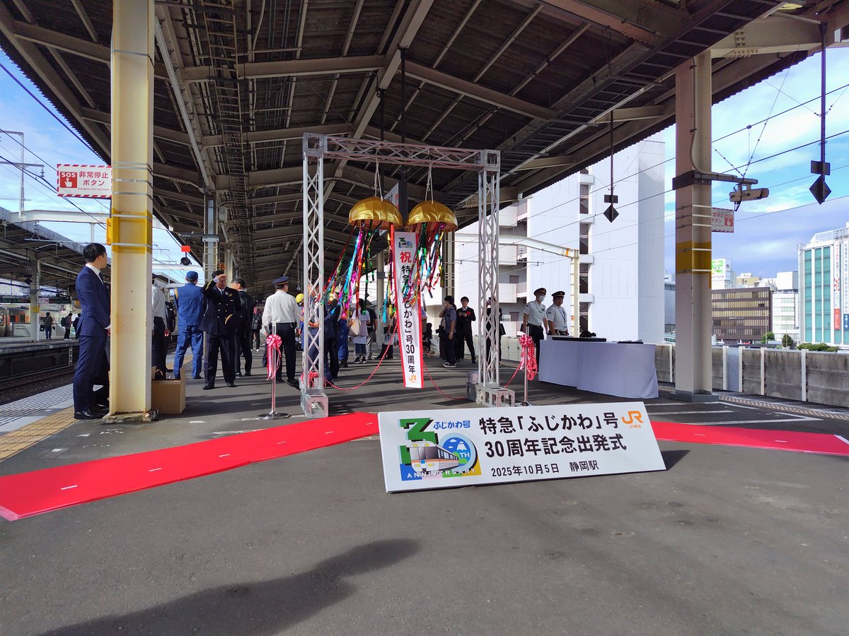 特急「ふじかわ」の30周年を祝う記念出発式がJR静岡駅で行われました。このイベントは多くの人々に愛されるふじかわの歴史を振り返る良い機会となりました。また、沿線の魅力を再発見できる「マルシェトレイン」が導入されたことで、地域の名品を楽しむことができ、観光促進への期待も高まります。