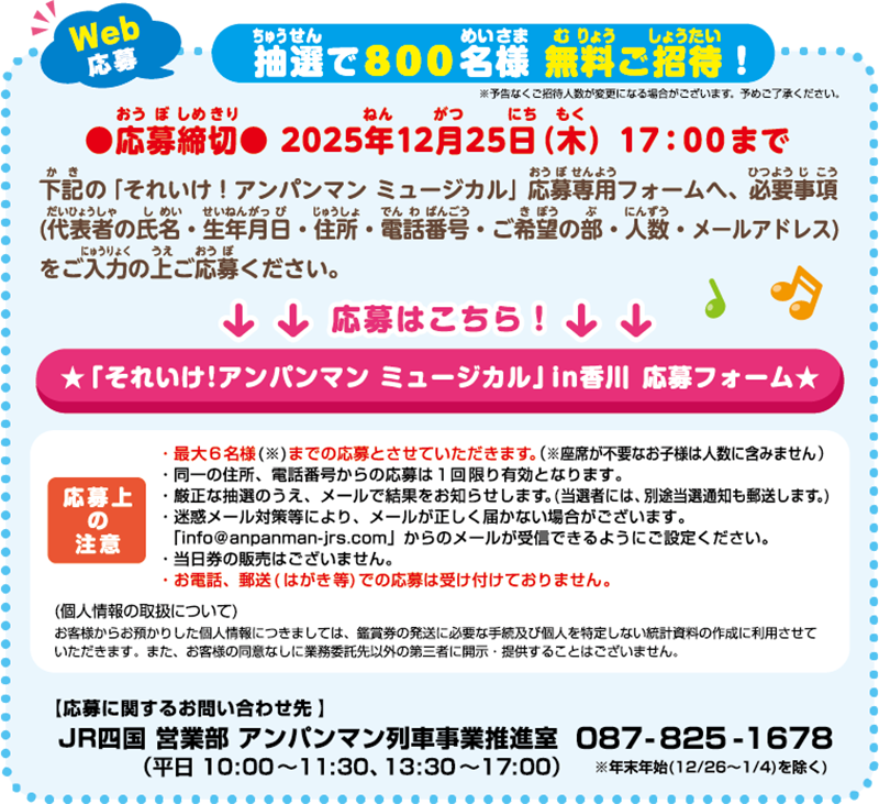 @news_ohkJR四国 26年2月に観音寺市で開催「それいけ!アンパンマン」ミュージカル 800人無料招待【香川】続きは→ohk.co.jp/data/26-202510… pic.x.com/MsJODqTDLI