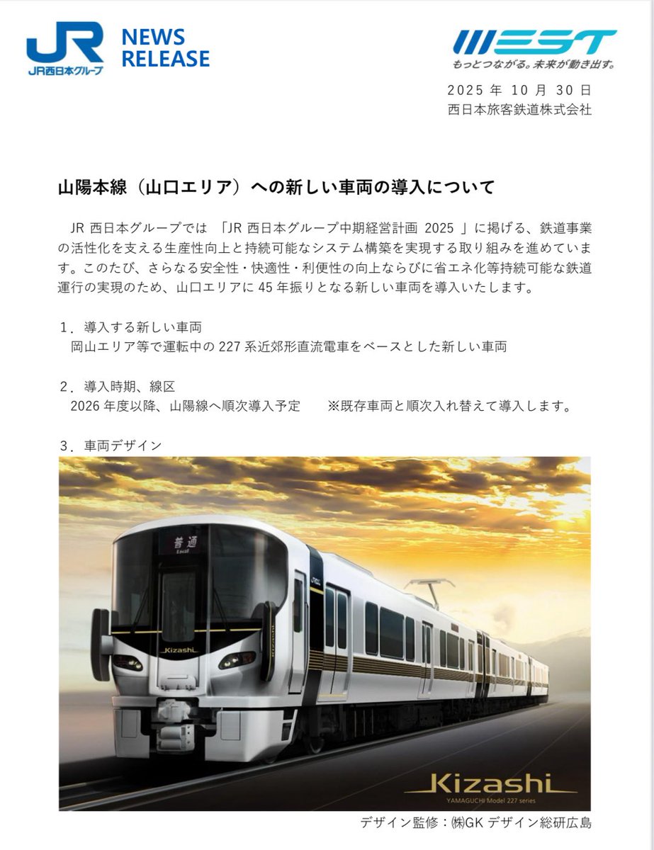 @yama_tetsudo山口の「維新」を乗せて走る!JR山陽線に新車両24両が順次導入決定 旧国鉄115系を置き換え(KRY山口放送) approach.yahoo.co.jp/r/QUyHCH?src=h…