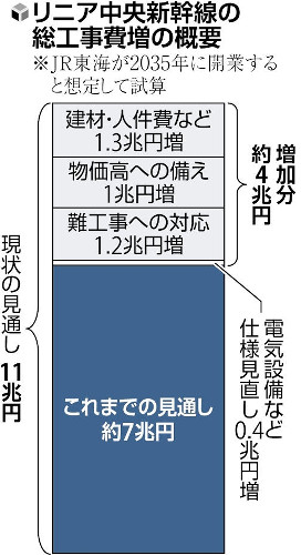 | 物価高騰が直撃 リニア中央新幹線の総工事費が11兆円に激増 開業時期も見通せず …JR東海はリニア中央新幹線の品川・名古屋間の総工事費について、従来から約4兆円増え、11兆円となる見通しであることを発表しました。 リニア中央新幹線… (出典:abn長野朝日放送) |