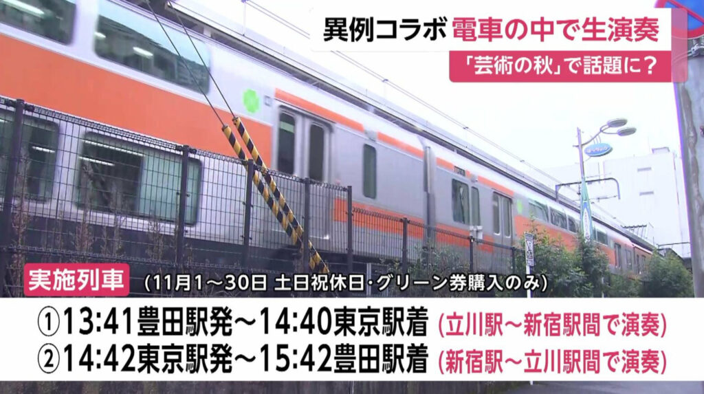 @FNN_News生演奏を電車内で間近に体験…JR中央線快速グリーン車で「芸術の秋」期間限定サービス 11月1日からスタート #FNNプライムオンライン #LiveNewsdays fnn.jp/articles/-/951…