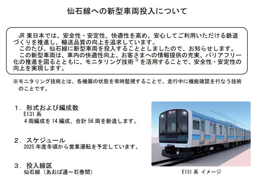 @jianyi_n700s仙石線のE131系「運行開始日」決定 約80年ぶり新型電車、初日は出発セレモニー #仙石線 #E131系 news.railway-pressnet.com/archives/83407