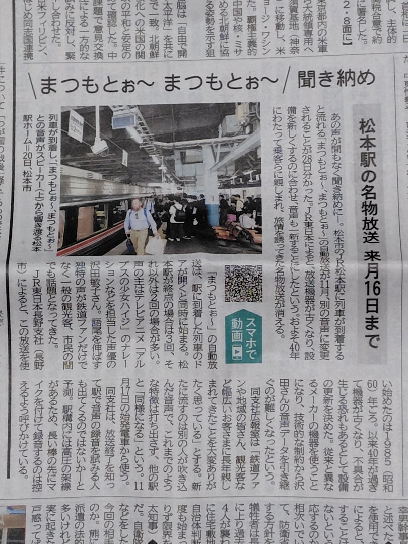@k4siR"「まつもとぉ~」JR松本駅の自動アナウンス終了へ…別れ惜しむ 40年親しまれ 長野・松本市" l.smartnews.com/m-6AZvcEbS/Pdz…