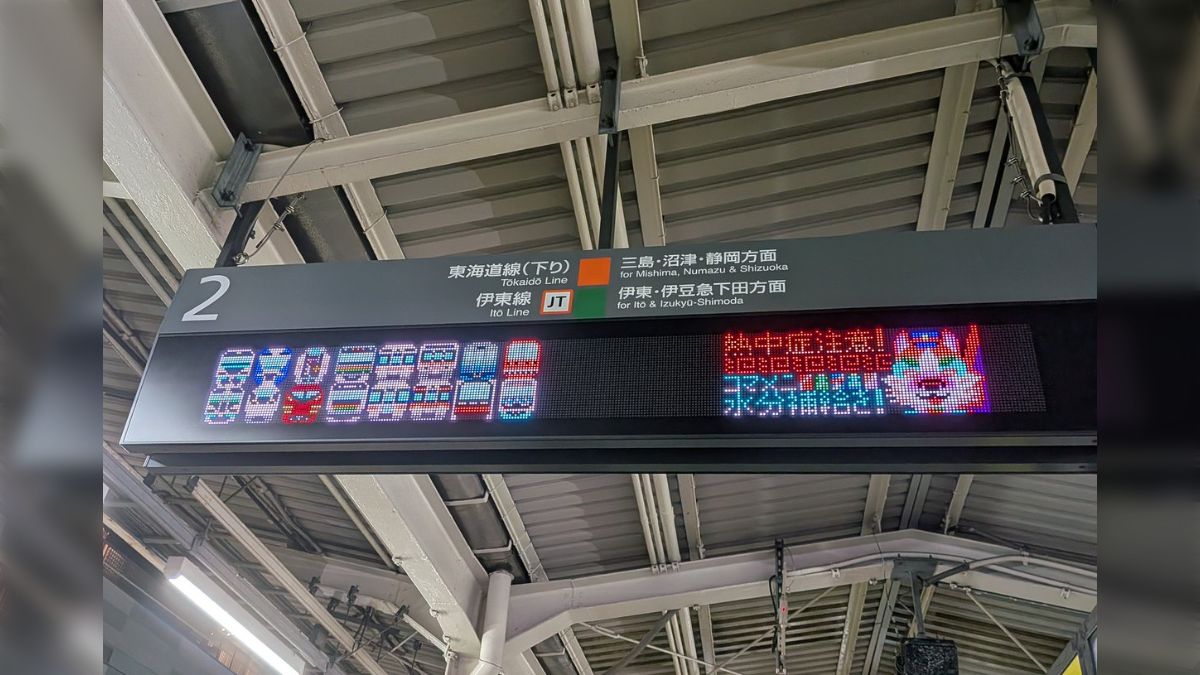 @raku_travelnewsift.tt/nzpl2i1 / 「超絶すぎ」「ファミコン感」熱海駅で話題の“LED発車標”のドット絵、完全紹介!
