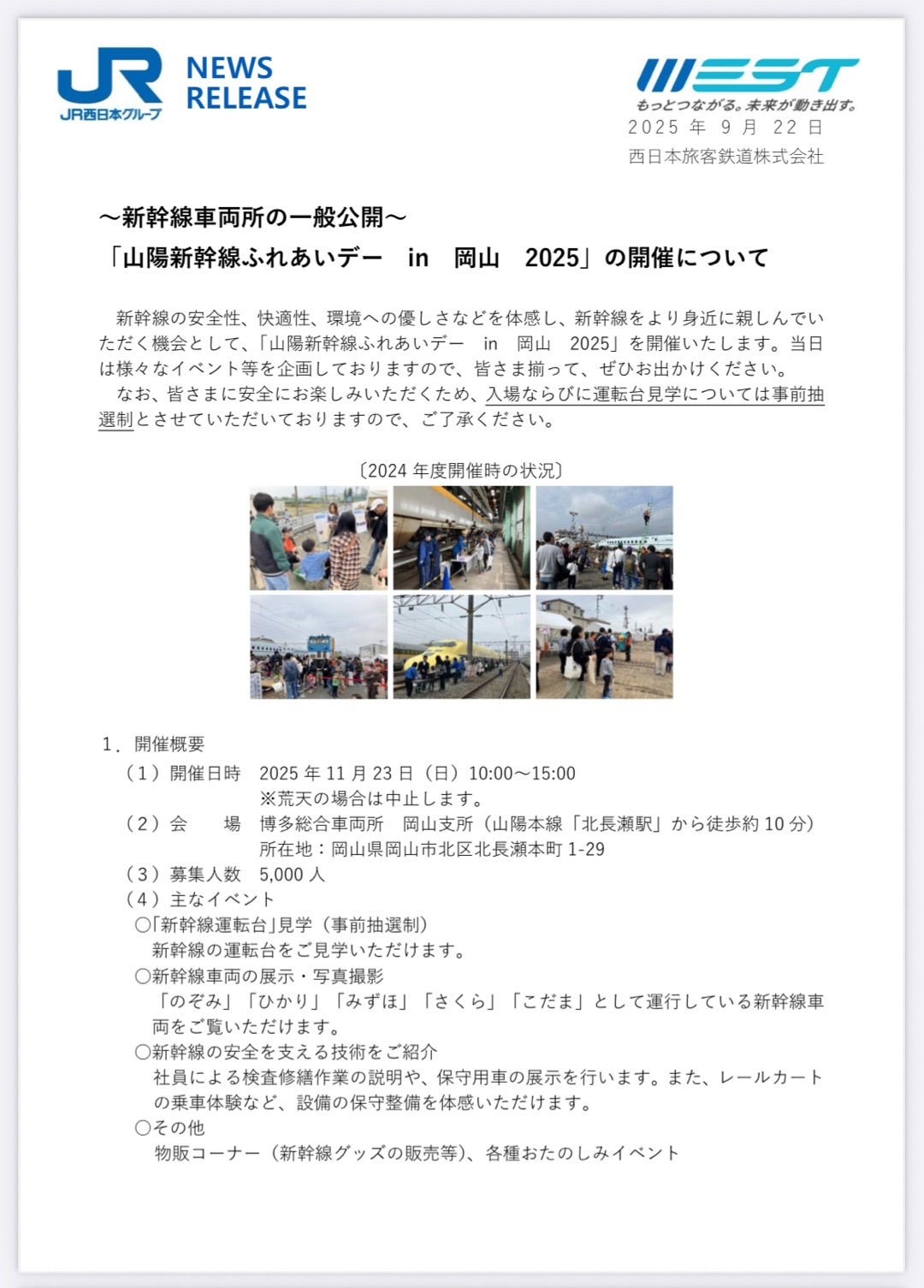 @yan5296"岡山市で「新幹線ふれあいデー」 連休中日に多くの親子連れでにぎわう" - OHK岡山放送 #SmartNews l.smartnews.com/m-6DMZNtMQ/fHO…