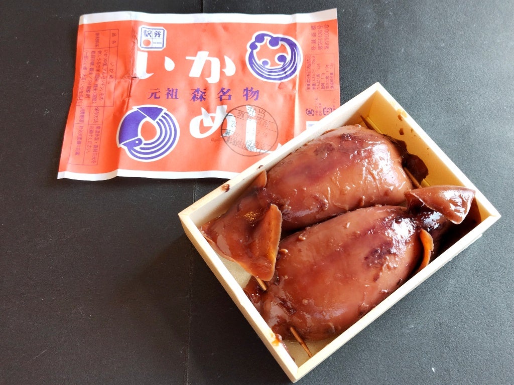 @bellmega森駅は鉄オタにはとても有名な駅で、なんと言っても駅弁「いかめし」。各地の駅弁催事での鉄板商品ですね。駅前で買ったのは初めてで嬉しい。今すぐにでも食べたいところだけど、食べたいものがいろいろあるので我慢 pic.x.com/XNCyU559GW