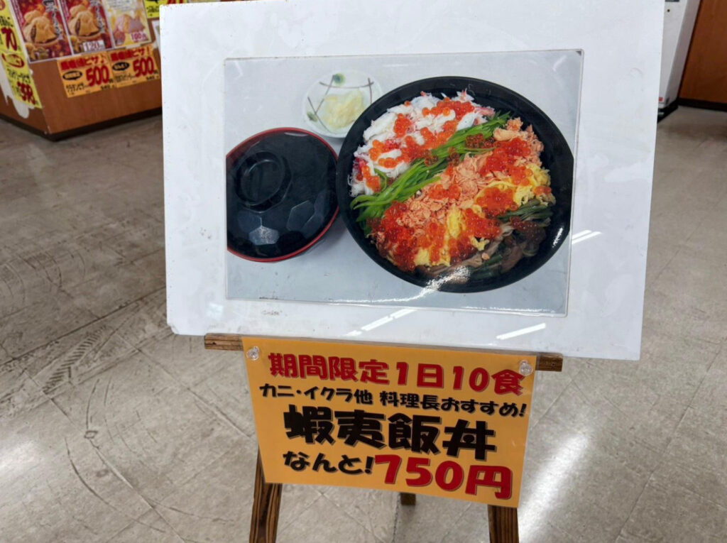 @goguy_hokkaidoカニ・イクラなどが入った蝦夷飯丼が税込750円!蕎麦とうな丼のセットも税込750円!馬鹿値食堂はお得に海鮮丼を食べることができる食堂です。場所は北海道札幌市手稲区前田4条7丁目1−1の現金問屋手稲店内... sapporonishi-teine.goguynet.jp/2025/11/25/bak…