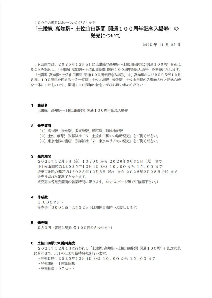 @news_ohkJR土讃線 一部区間開通100周年で記念入場券発売へ 香川、高知のほか東京などでも発売 続きは→ohk.co.jp/data/26-202511… pic.x.com/GBwFHYOps1