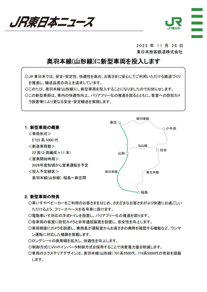 @DengoSeries奥羽本線に新型車両「E723系」導入 2026年秋ごろデビュー - 鉄道コム share.google/3VVoVfzqRvohw3…