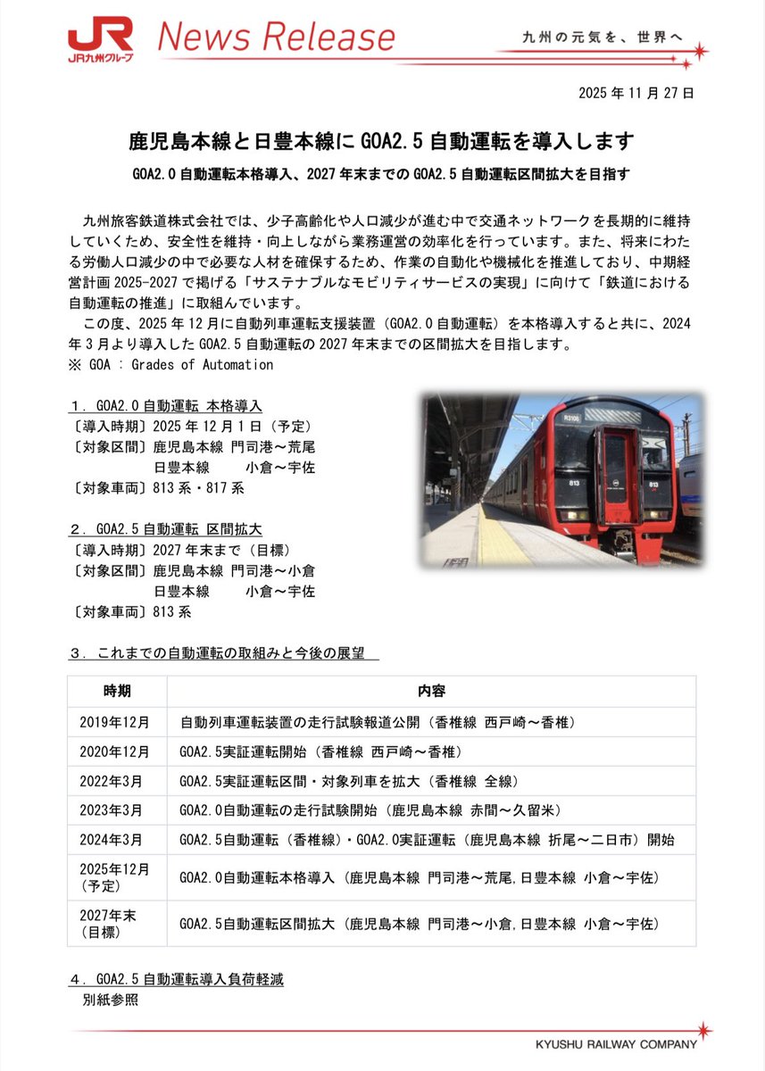 @rkbnews4chJUST IN!! 新着記事 ⠀ // 🗣「技術の進展をみながらもっと進めていきたい」 JR九州が鹿児島線と日豊線にも自動運転を本格導入 12月から \\ もっと見る 👇👇 📰newsdig.tbs.co.jp/articles/-/231… pic.x.com/dPRxqkzjYj