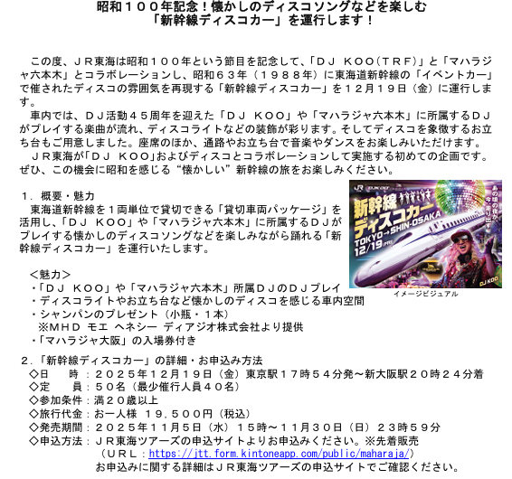 @ovFd4rQ6YjRkWSxディスコ新幹線、37年ぶり復活 DJ KOO「国内最速の体験を」(朝日新聞) news.yahoo.co.jp/articles/513fc…