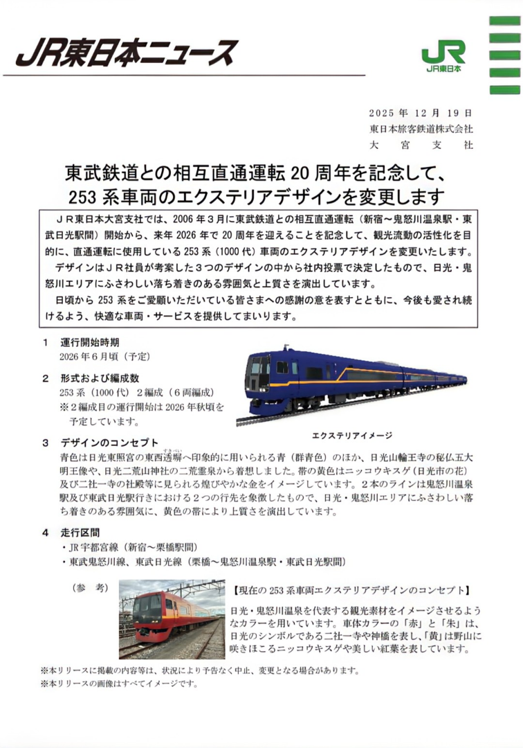 @mainichijpnews東照宮から着想 「日光号」など253系、青基調に 26年6月ごろ mainichi.jp/20251229/k00/0…