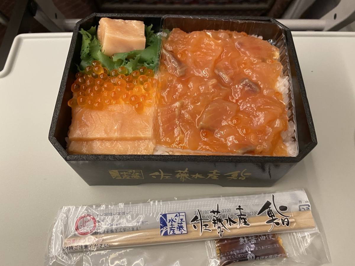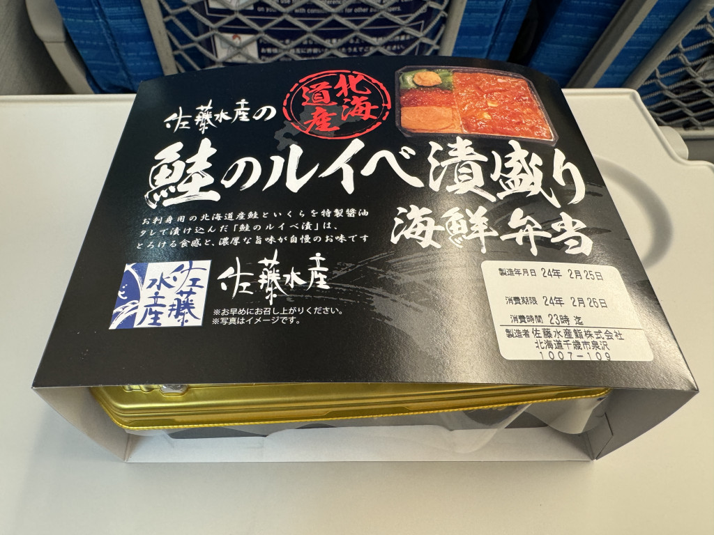 @shigolgo13南千歳から特急おおぞらで帯広へ。空港で買うた鮭のルイベ漬盛り海鮮弁当に同じく佐藤水産の塩辛職人を合わせたら飛ぶ旨さ🪽腹膨れて寝てたらいつの間にか着きそう pic.x.com/l5VWKYOSBB