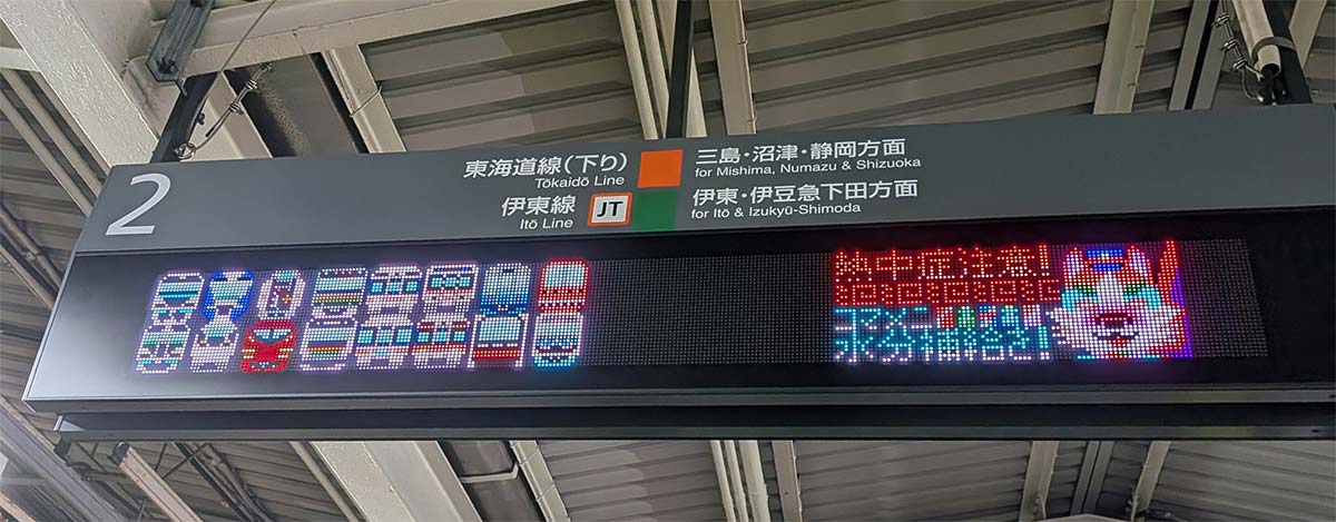 @kasagamori発車標に表示されるドット絵に定評のある熱海駅。もはや名物だよなあ〜 x.com/LaviverRS/stat…