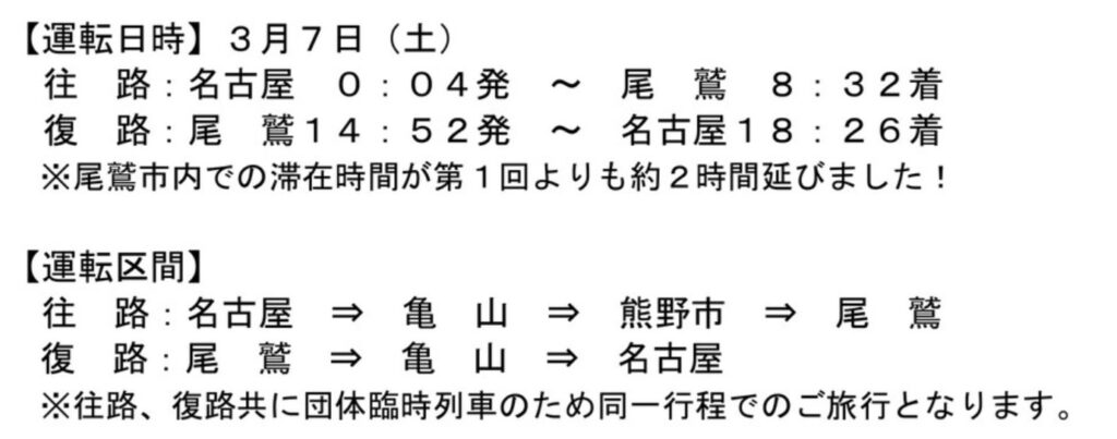 @mixpotこれ0時発日帰りなので結構な強行軍なんだけど、2回目やるってことは前回評判良かったのかな?|愛知県と三重県を結ぶ「夜行列車」が運行へ 8時間以上かけて最新ハイブリッド特急車両が走る! | 乗りものニュース trafficnews.jp/post/631744