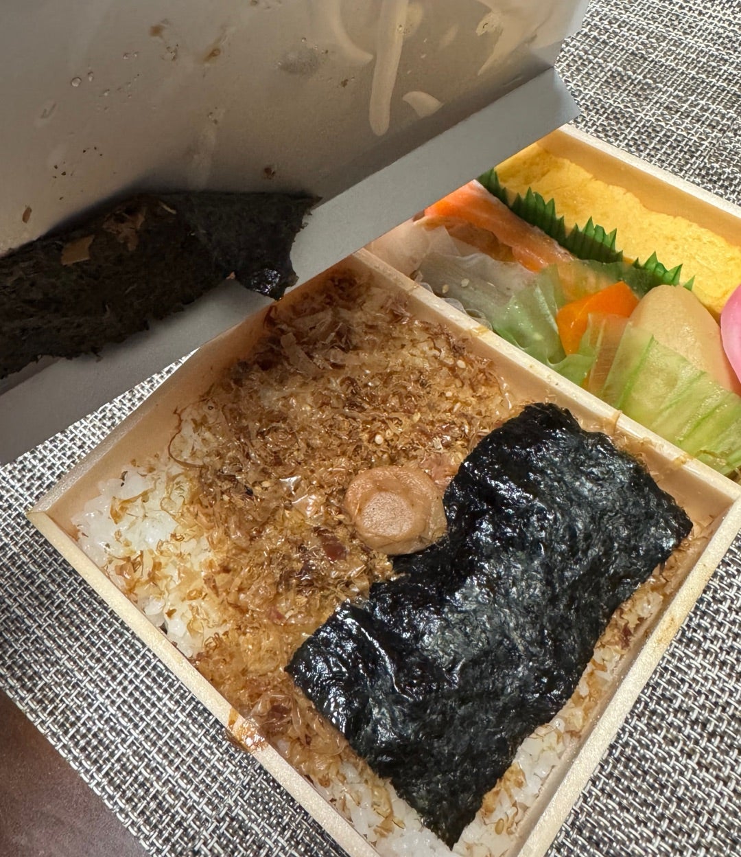 @shimarisu_go駅弁をゲット。 米沢牛すきやきと鮭はらこめし。 肉と海鮮が楽しめてウマー! さらに、福島名物駅弁の海苔のりべんのおにぎりもゲット🍙 おかかと佃煮たっぷりでウマー! ご馳走様でした。 pic.x.com/afmvxPBTTW