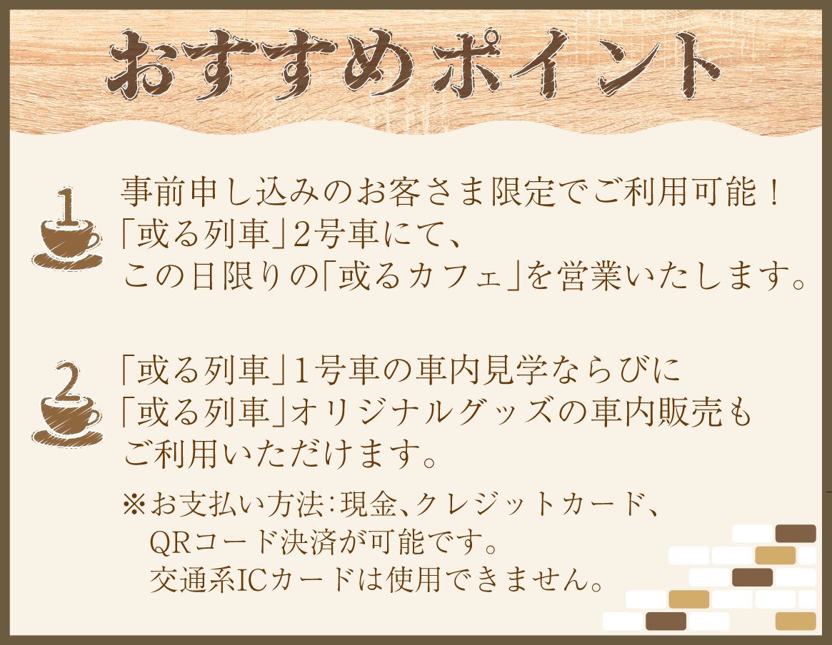 @2nd_train_plus[鉄道イベント情報]【JR九】博多駅 観光列車「或る列車」使用「或るカフェ」イベント開催を追加しました。2nd-train.net/events/article…