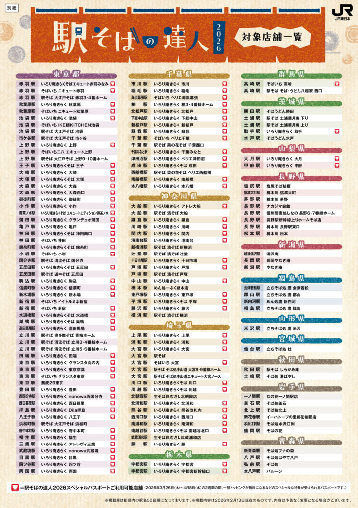 @JREast_News/ 「駅そばの達人2026」を開催します🎊 \ 今年も駅そばファンを増やすため「駅そばの達人2026」を2月19日から開催します👏 pic.x.com/Ou7pOLsanW
