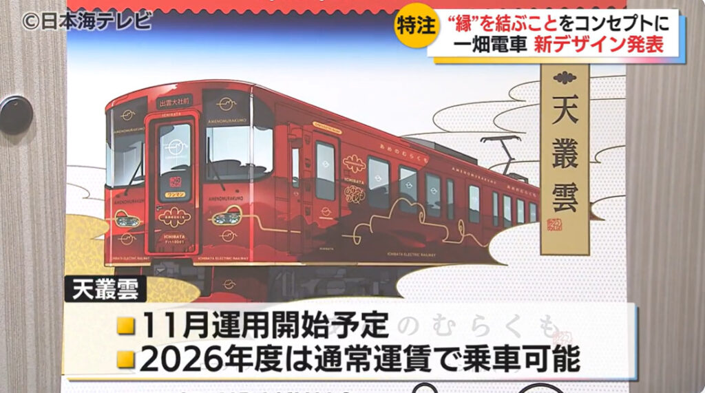 @kbrkohrki2一畑電車の新型車両「天叢雲」のデザイン発表 コンセプトは人・物・文化などの縁結び 温もりを感じる木材をふんだんに使った内装に注目 通勤・通学・観光と幅広い利用を想定 島根県 |日本海テレビNEWS NNN news.ntv.co.jp/n/nkt/category…