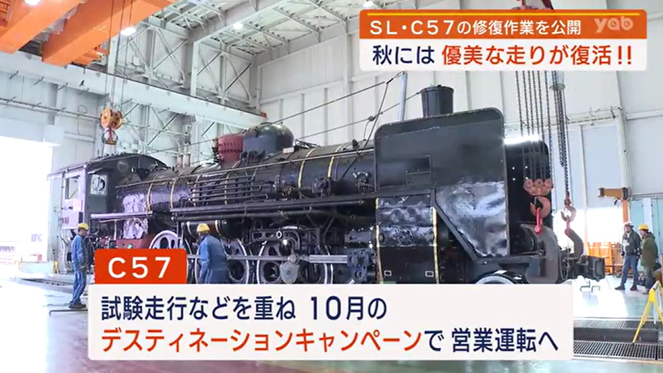 @kbrkohrki2『「貴婦人・C57」は、安全に走れるかの確認や試験走行を重ね、10月に始まる大型観光企画デスティネーションキャンペーンに合わせ営業運転を再開する予定です。』 SLやまぐち号 秋復活に向け修復作業公開(yab山口朝日放送) #Yahooニュース news.yahoo.co.jp/articles/2bdc5…