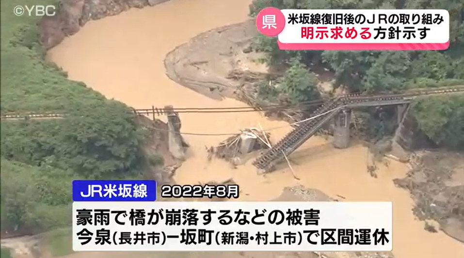 @ybc_hodo豪雨被害で区間運休続くJR米坂線復旧案 山形県がJRの具体的関与を示すよう次回会議で求める方針|YBC NEWS NNN news.ntv.co.jp/n/ybc/category…