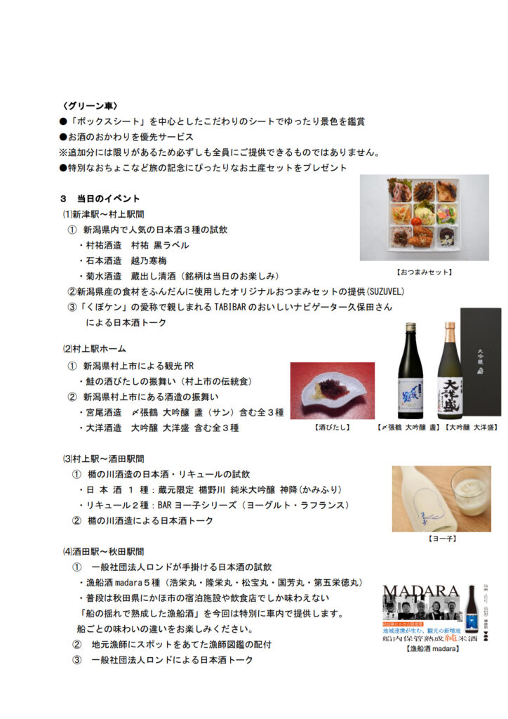羽越本線に『ひなび』が初入線することは、鉄道ファンとしても日本酒愛好家としても非常に嬉しい出来事です。新津から秋田までの長旅で、地元の名酒を飲み比べることができ、風光明媚な日本海の景観を眺めながら、沿線の酒蔵の日本酒などを楽しめます。旅を通じて地域の魅力を楽しむことができるこのような特別な列車が、今後も増えることを心から期待しています。