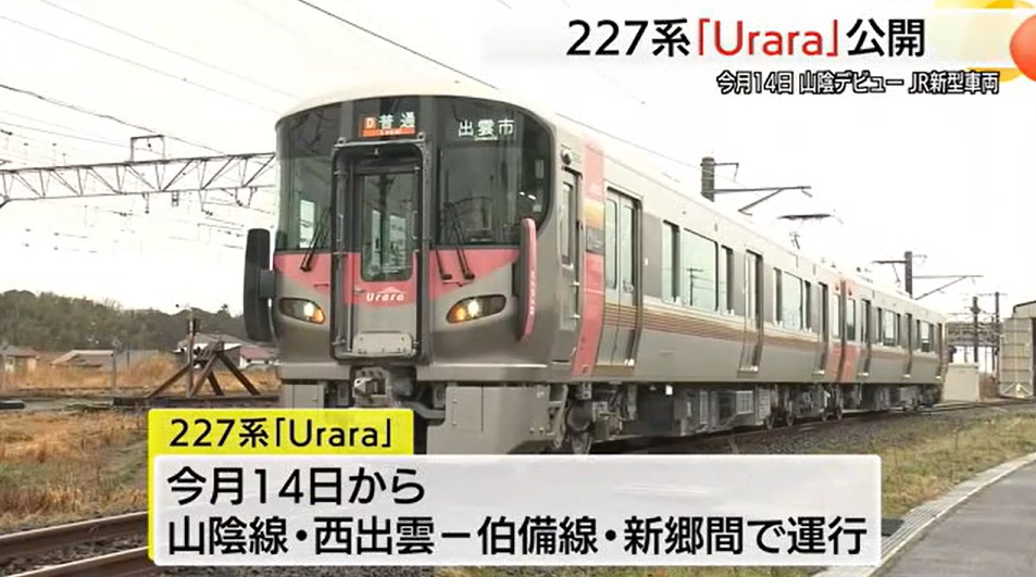 @kbrkohrki2『山陰エリアの普通列車に新型車両が導入されるのは23年ぶりです。』 新型車両227系「Urara」山陰エリアデビューへ 安全性など向上で通勤などをより快適に(JR西)(TSKさんいん中央テレビ) news.yahoo.co.jp/articles/b7679…