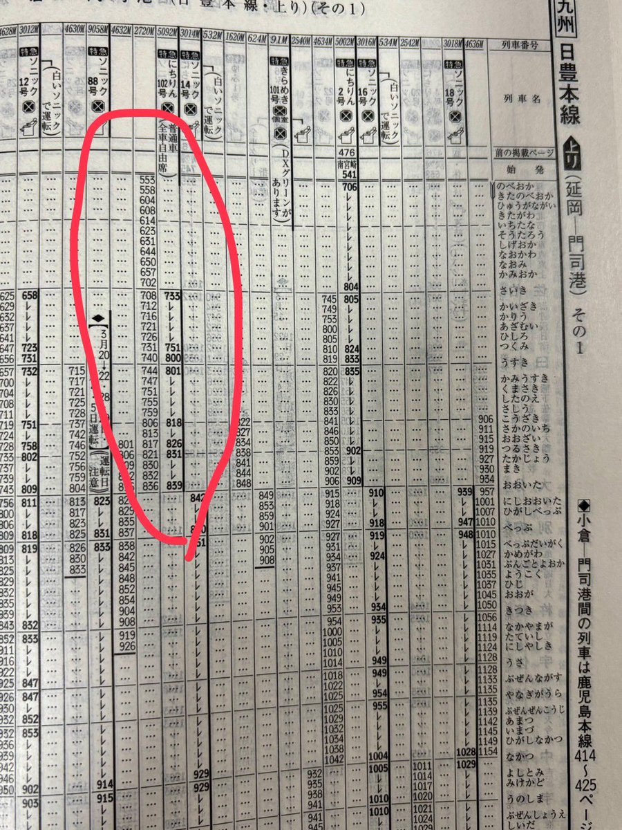 @taro0916tetsudo3月に入りました。 今日は日豊本線に関する話題です。 先月末に時刻表の3月号が発売され、普通列車など全列車の詳細のダイヤが発表されました。今日は九州エリアの日豊本線に関する話題です。 個人的に気になったのが延岡発大分行きの2720M(延岡553→大分836)。 pic.x.com/C5RJzmZdTv