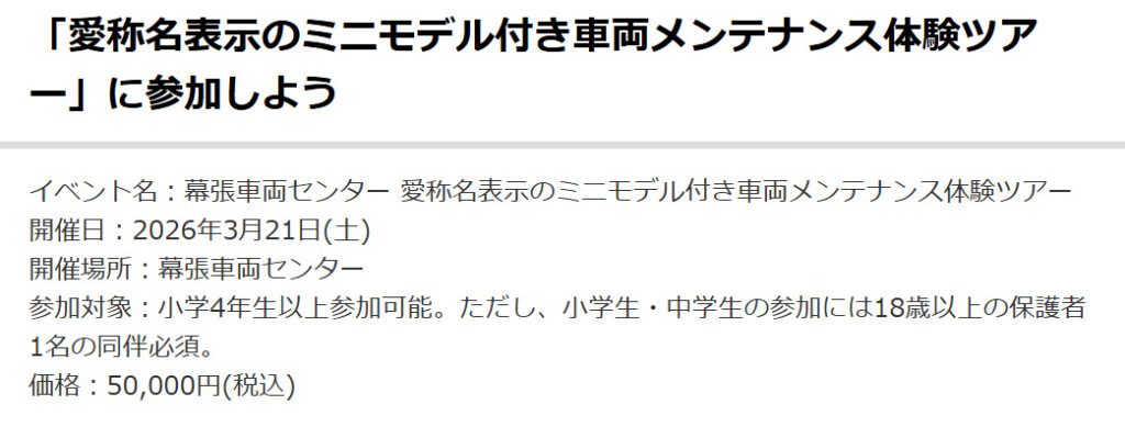 @asukanano_【春休み2026】JR幕張車両センター「車両メンテナンス体験ツアー」3/21(リセマム) 5万ってぼったくりだろ news.yahoo.co.jp/articles/8bac5…