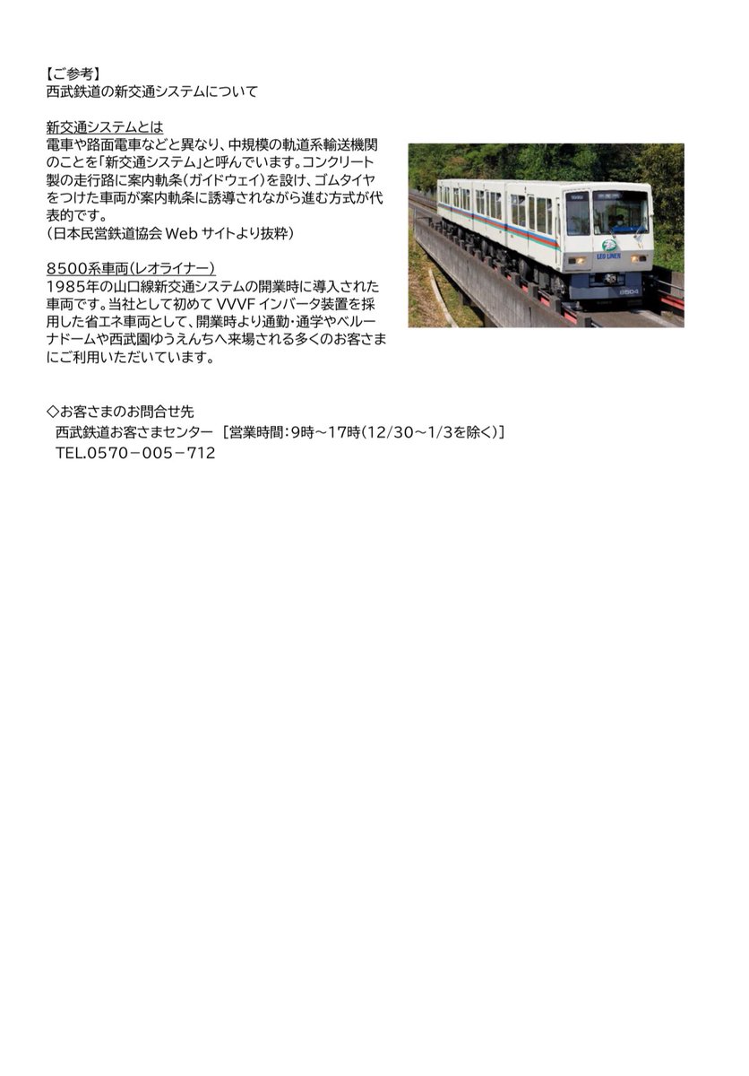 @milktea0004「大手私鉄で唯一の鉄道」41年ぶりの新型車両で超進化! “遊園地のおとぎ列車”の面影ゼロ!? 西武「レオライナー」 trafficnews.jp/post/643311