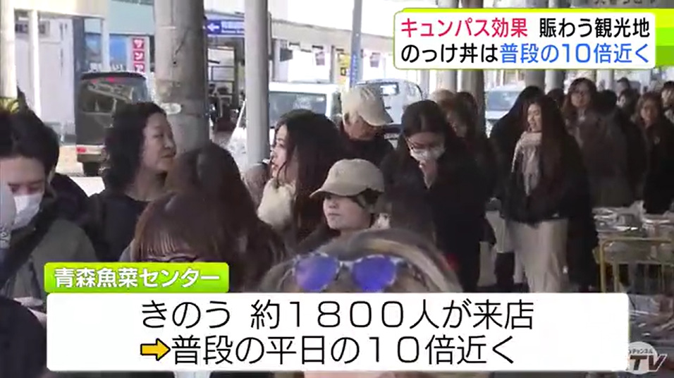 @AssetmixLLC“キュンパス効果”で青森市の名物「のっけ丼」提供の青森魚菜センターに長蛇の列 11日の客数は約1800人で普段の平日の10倍近くに 観光施設に賑わい「1月に客が少なかった分を取り戻している感じ」(ATV青森テレビ) #Yahooニュース news.yahoo.co.jp/articles/fe374…