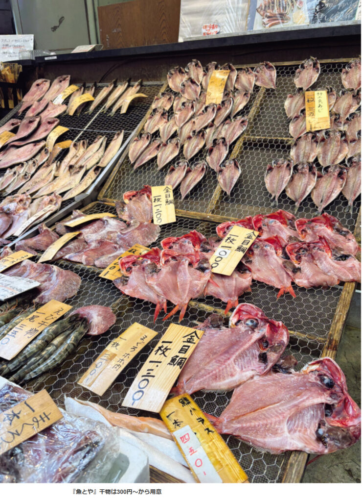 観光客で賑わう熱海の商店街は、食事処や土産店が並び、温泉饅頭や焼きたての干物など食べ歩きグルメが人気で、駅近で観光の合間の立ち寄りにも便利です。中でも「魚とや」は金目鯛やアジなどの干物が充実し、店内で焼いて食べられる“呑める干物屋”として楽しめるが、営業時間が早めなので注意が必要です。