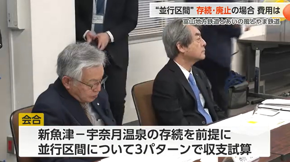 富山地方鉄道本線(滑川~宇奈月温泉間)の存続を巡る検討会で、並行する区間(滑川~新魚津)の扱いについて3つの案の費用試算が示されました。現行ダイヤで維持する場合が最も安く、10年間で約136億円です。一方、運行廃止と線路撤去は約180億円と最も高額で、代替バスや橋の新設、検査施設整備が理由です。収支面では、撤去案が最も赤字幅が小さく(年約7.4億円の赤字)、現状維持でも約8.8億円の赤字を見込みです。県は今後、自治体や鉄道会社の意見を踏まえ、本格的な議論を進める方針です。
