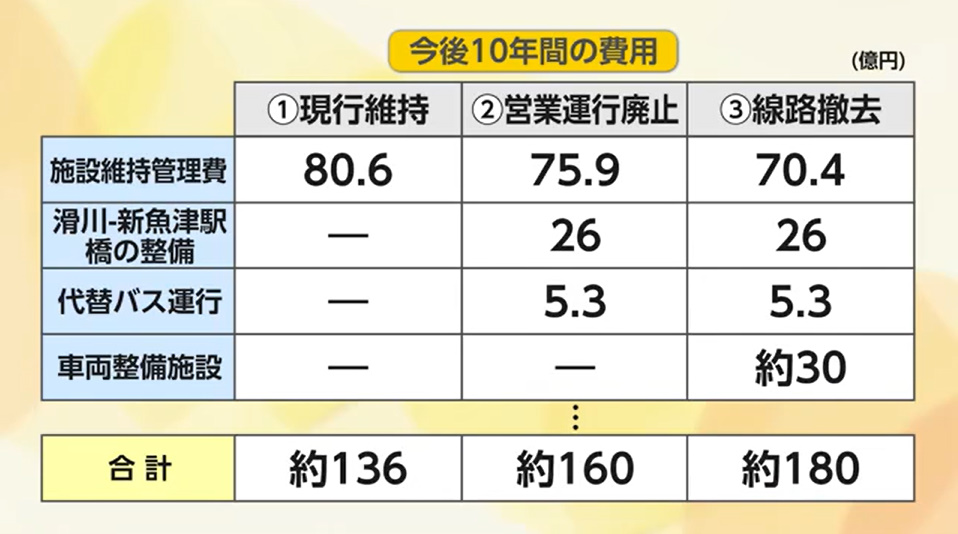 @Re_on00Flower富山地鉄・本線の存廃めぐり試算公表 現状維持が最安136億円、廃止・撤去は180億円超(富山テレビ) news.yahoo.co.jp/articles/425c6…