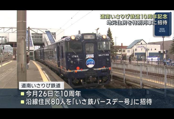 @domin_inn北海道の道南いさりび鉄道が開業10周年 特別列車「いさ鉄バースデー号」運行 地元小中学生が吹奏楽で祝福 htb.co.jp/news/archives_…