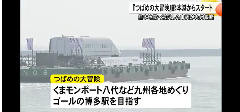 @junjun0691JR九州企画、つばめの大冒険!福岡県三池港へ入港しました。九州新幹線全線開通15周年プロジェクトで熊本震災で被災した新幹線です。来月には博多駅前で展示されます。 pic.x.com/Fvdf90dhmM