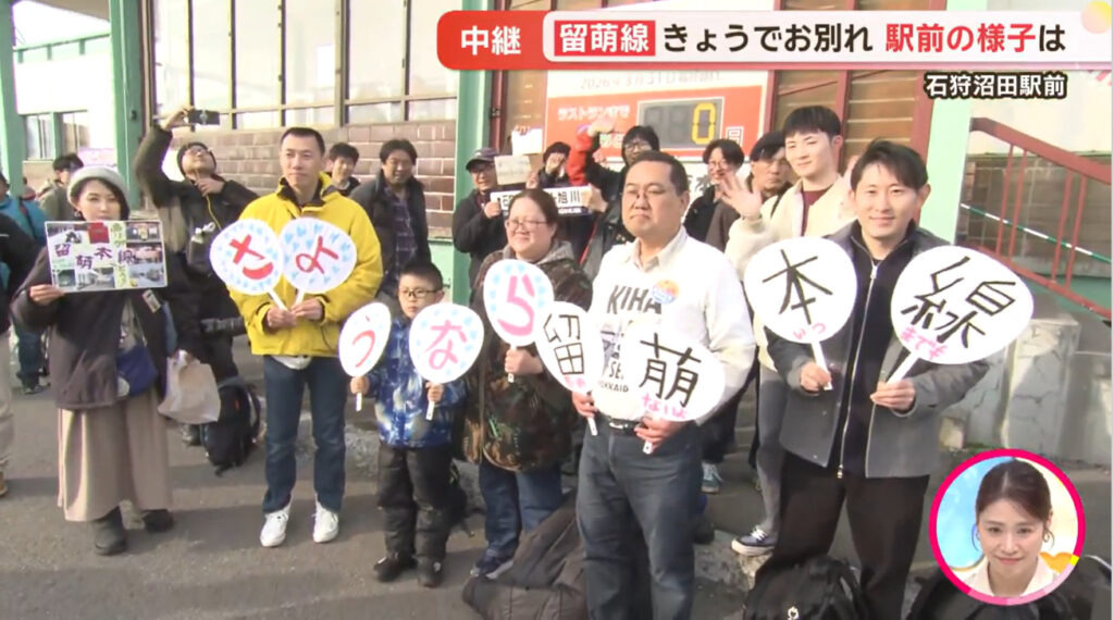 @Tsukky_Meiso留萌本線ラストランまであと一日となるこの日、駅のあちこちに『ありがとう留萌本線』の言葉があふれ、そして別れを惜しむ人たちが詰めかけていた。私もその中に紛れて『私の留萌本線ラストラン』スタート! #留萌線 深川駅 2026.3.20 pic.x.com/LHMZkVnOHt