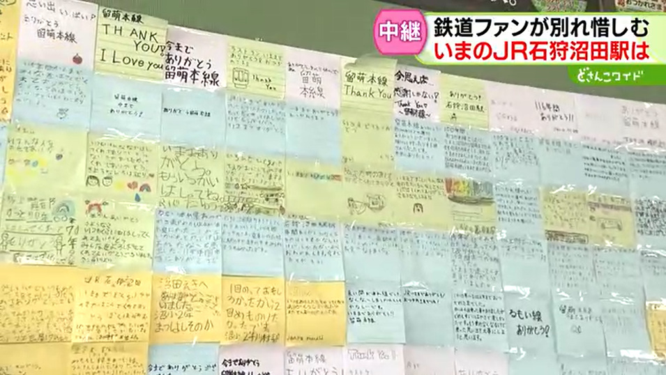 @Yakan_so_ko_nin【中継】感謝の声あふれる!駅舎に多数のメッセージ JR留萌線きょうラストラン…石狩沼田駅のいま|日テレNEWS NNN news.ntv.co.jp/category/socie…