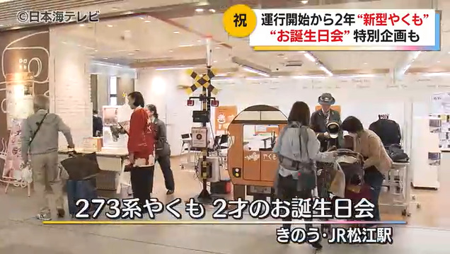 @hodo_nkthodo273系新型やくも運行2周年 松江駅でお誕生日会 改札口での放送体験や写真撮影できるコーナーなど親子連れや観光客でにぎわい 島根県松江市|日本海テレビNEWS NNN news.ntv.co.jp/n/nkt/category…