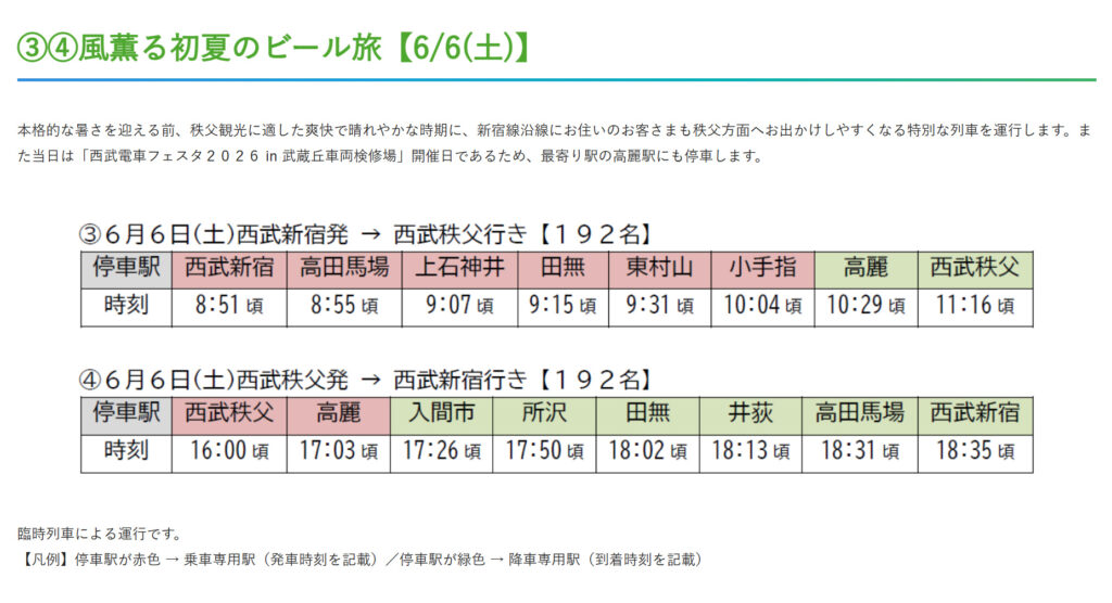 @Tokorozawa_news西武鉄道ホームページ 『風薫る初夏に、特別なビール旅をご提案! 特急レッドアロー号による「ビール特急2026」運行』 seiburailway.jp/newsroom/news/…