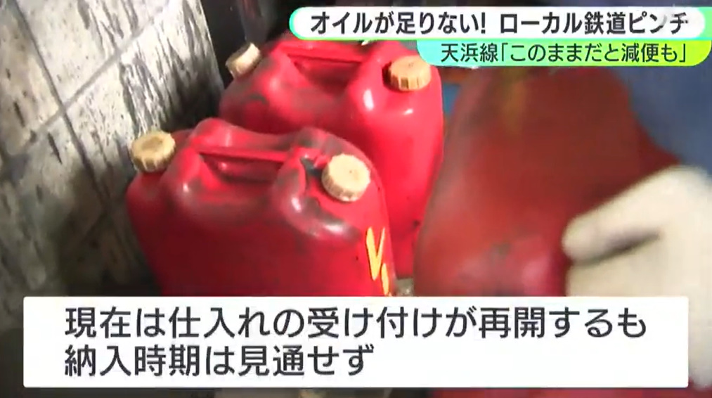 @somechan8195「ドラム缶にはあと1両分しか入っていない」ディーゼル列車の“心臓”守るエンジンオイルが足りない 減便の可能性も…イラン情勢の影響がローカル鉄道にも(静岡放送(SBS)) #Yahooニュース approach.yahoo.co.jp/r/QUyHCH?src=h… これ他の鉄道会社もヤバいんじゃない(;・∀・)?