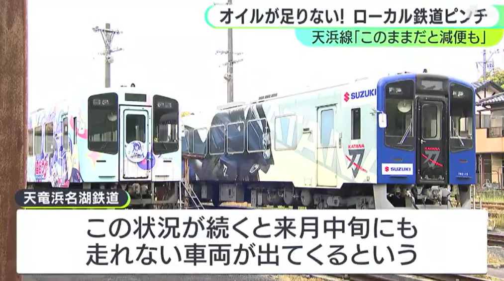 @goikpoまじかよ天浜線 「ドラム缶にはあと1両分しか入っていない」ディーゼル列車の“心臓”守るエンジンオイルが足りない 減便の可能性も…イラン情勢の影響がローカル鉄道にも(静岡放送(SBS)) - Yahoo!ニュース share.google/jT504l4qIPAR2V…