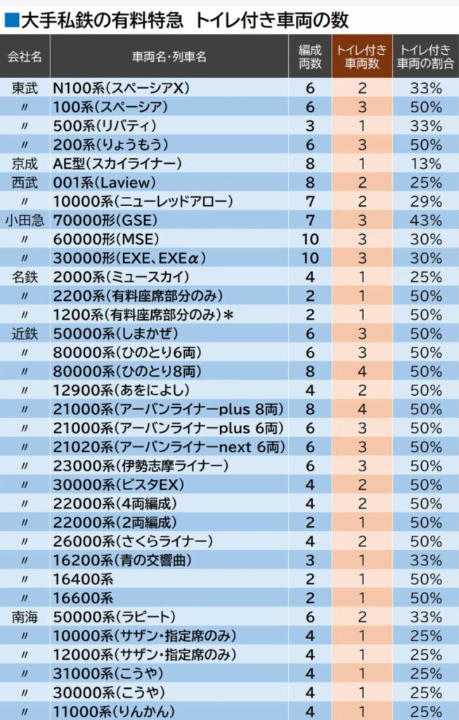 @TY_MM109新幹線・特急・私鉄、調べてわかった「トイレの充実度」 多数派は「2両に1両」だが8両編成に1両だけの例も toyokeizai.net/articles/-/942…