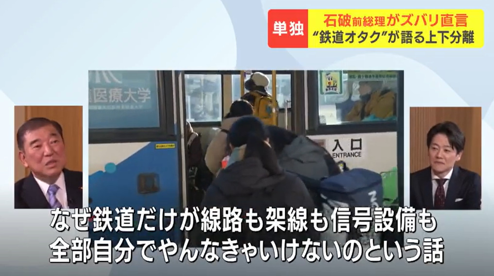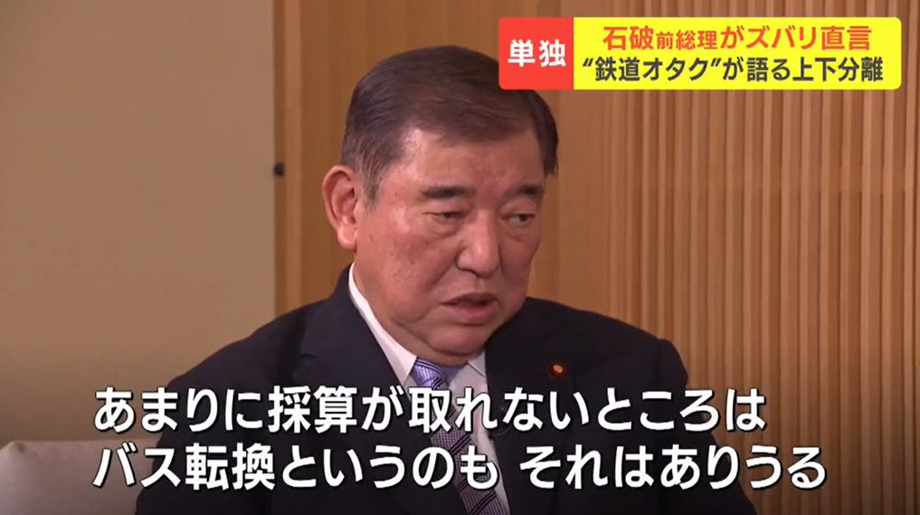 @tkcokmt"「鉄道は上下分離が当たり前」石破茂前総理大臣が持論「空気を運んでいるような鉄道まで国が支援するかというと、それは違う」バス転換の必要性も" l.smartnews.com/m-7CcgUo0M/rNB…